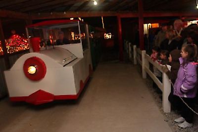 All though all of our lights are visible from the road we operate 3 trains through 10 acres of our displays.  The trains feature windows on 3 sides to help keep you warm on those cold nights.  The train, although out of a child's dreams, is for riders of all ages, from 0 to 105 years old.  Our entire fleet was  replaced in 2007 and now features lower cars with wider doors to help better accommodate our senior citizens
